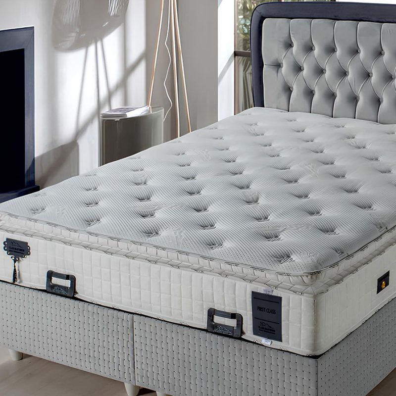 First Class yatak, konforun yanı sıra omurga sağlığını da ön planda tutan özel yapısıyla günün yorgunluğunu üzerinizden alır. Katman katman tasarlanan bu model, kaliteli malzeme içeriği ve nefes alan yapısıyla benzersiz bir uyku deneyimi sunar.