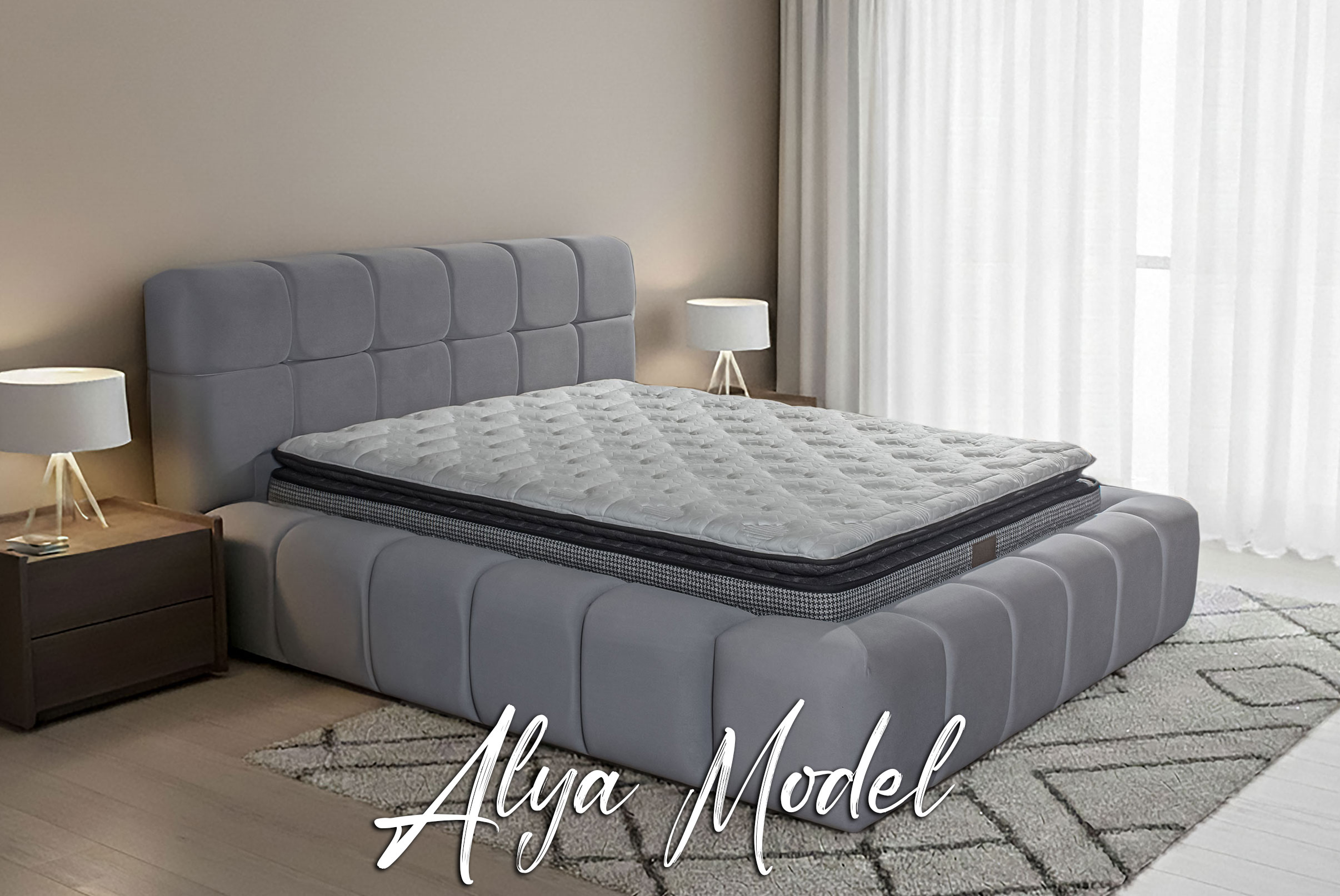 Türkmenbaşı Yatak’ın modern tasarım anlayışıyla geliştirdiği Alya Set, güçlü duruşu ve yumuşak hatlarıyla yatak odalarına sofistike bir dokunuş katıyor. Lüks baza, konforlu yatak ve estetik başlık uyumu sayesinde hem görsel hem de fonksiyonel olarak üst seviyede bir deneyim sunar.